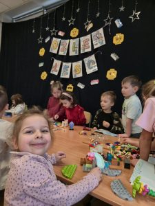 Dzisiaj nasza sala zamieniła się w laboratorium kreatywności!!! Z okazji Dnia LEGO przedszkolaki przyniosły swoje ulubione zestawy, udowadniając, że wyobraźnia nie ma granic. Co się działo? Wielkie Budowanie: Powstały futurystyczne pojazdy, kolorowe zamki i konstrukcje, o których nie śniło się inżynierom!